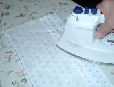 Plegar un borde largo de 2 1/2 pulgadas, cubrió en su lugar y había planchada plana. Este doblez largo formarán la sección en la que pronto sería coser bolsillos de una pulgada.