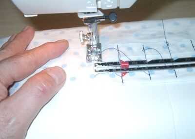Después de los primera docena bolsillos, finalmente me di cuenta que una tira de cinta, marcados a intervalos de una pulgada, facilitaría el proceso.