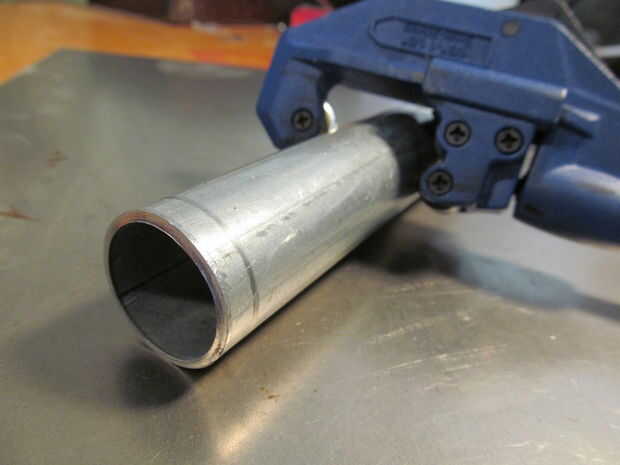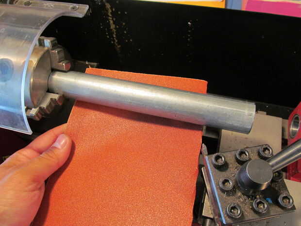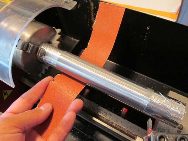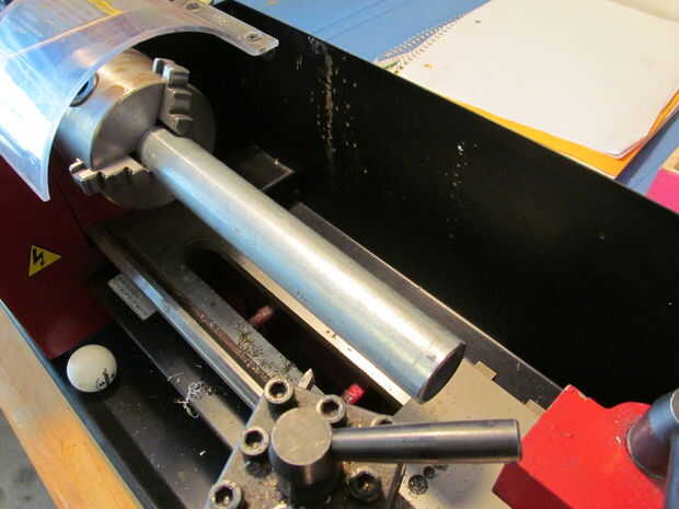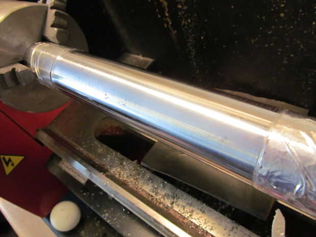 Lo primero que hice fue medir la longitud con un lápiz. Después de cortar con un cortador de tubo lo pongo en mi mini torno. Luego mecanizado y lijado de la capa de zinc. En esta zona que conseguir cubierta en azulado.