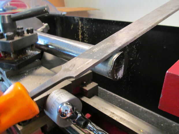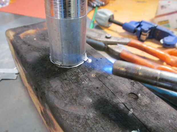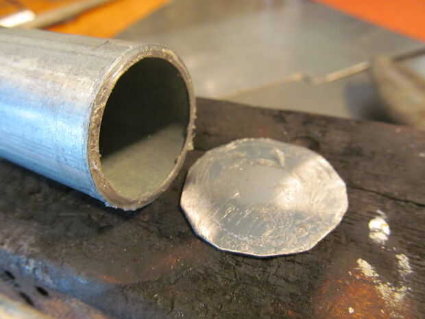 I cortar un círculo de chapa calibre 22 y soldadas en la parte inferior. Usé un archivo para descarga en mi torno la rutina.