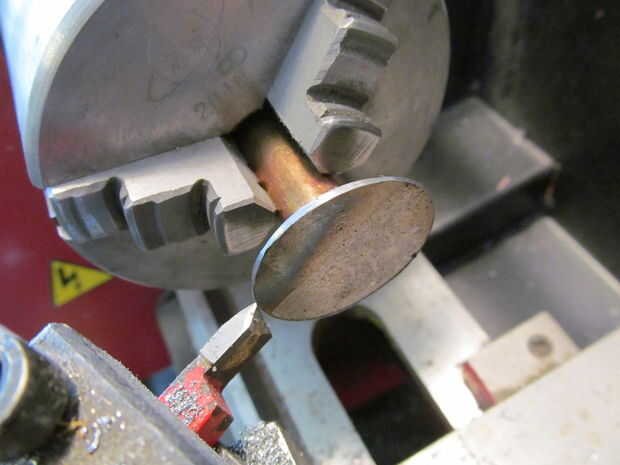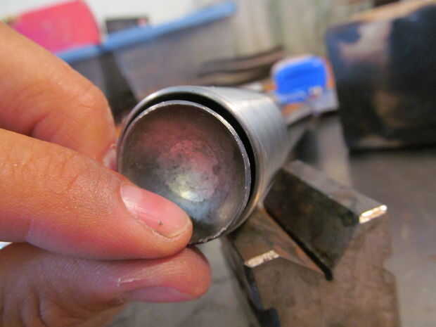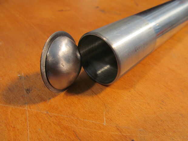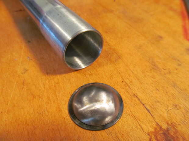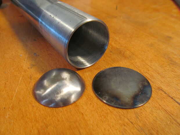 Yo a máquina dos círculos en mi torno uno de los cuales cúpula. Yo seguí reduciendo un círculo hasta que apenas cabe en el tubo.