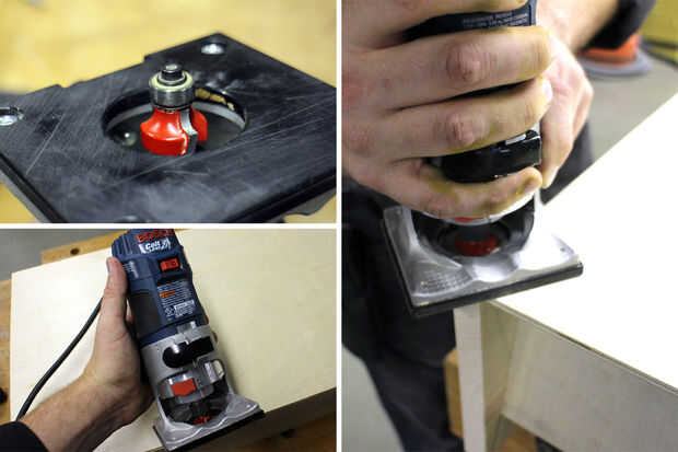 Elegí al router los bordes de mi estantería para darle una apariencia más suave y más acabada. Elegí una broca de 1/4" roundover. Trabajé los bordes en la parte delantera y espalda, así como la parte superior, dejando el interior los bordes y la parte inferior sin tocar.