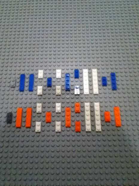 Este utiliza algunas piezas de lego que pueden no estar en tu colección. Herramientas adicionales no son necesarios que los legos se demostró en la siguiente diapositiva.Paso 1: Obtén todas las piezas yer!Hay 8 postes azules.Paso 2: ¿Cuál es tu desay