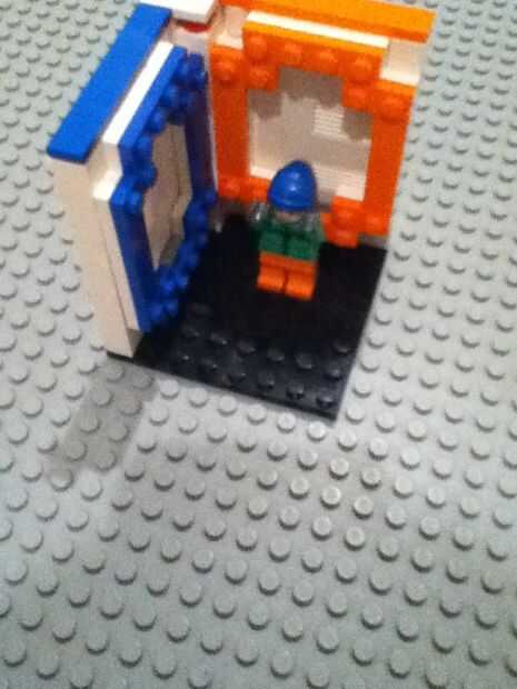 para ello, este mango u tener dis cosas. LEGO. minifig. principal portal de LEGO. permite comenzar!Paso 1: Haciendo el portal naranja.para hacer este paso u hacer un óvalo con los postes de madera naranja.Paso 2: Añadir figur.en el senter, verá un es