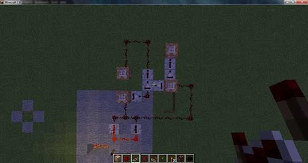 el segundo conjunto de cubos, hacer otro sistema de teletransporte. este va a ser idéntica a la que hicimos el último paso. con una adición. Añadir otro comparador al otro lado del primer bloque de comando en este sistema y su salida de tuberías en el lado del segundo comparador del primer sistema de. Esto hará que cuando los dos circuitos de teleport ejecutan (al mismo tiempo, ya que se está ejecutando en el mismo reloj) del segundo circuito desactivará el primero si se cumplen sus requisitos (con la clave correcta en tu inventario!)