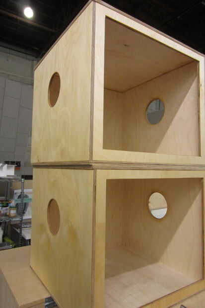 2. Monte la caja como se muestra. Usé cinta de doble cara (película fina estupenda, claro como materia) y una clavadora de aire para ponerlo todo juntos. Pegamento de madera también funcionaría si tienes la paciencia para ese tipo de cosas.