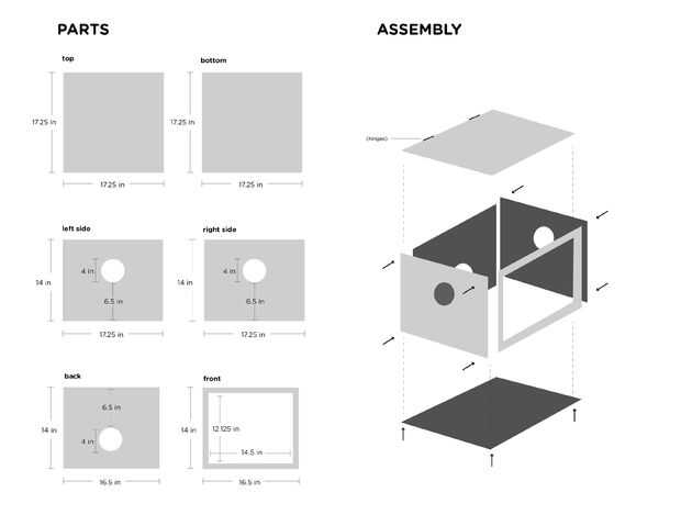 1. cortar las piezas de madera como se muestra. He utilizado una sierra de agujero de 4 pulgadas para los agujeros y los instructores de taller de madera me ayudó a cortar la pantalla de apertura con la Sierra de mesa reduciendo la hoja y cortar en la madera de la parte inferior.