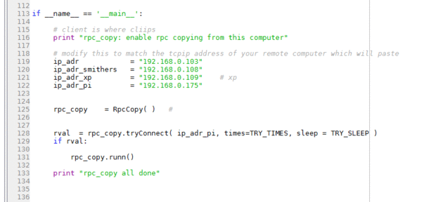 • Empezar a rpc_paste en el equipo de rpc_paste luego rpc_copy por el otro. Dejarlos correr ambos lugares. Primero puedes empezar rpc_paste pero si no se puede conectar en el primer minuto (ajustable en el código) le dará.