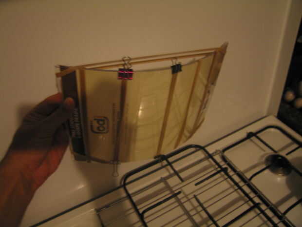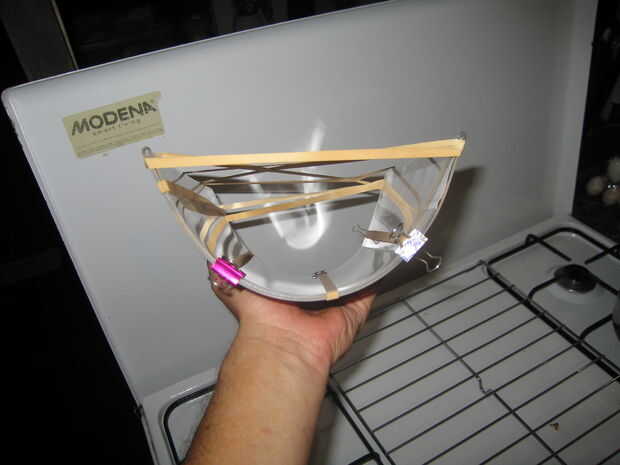 Mi primer intento no salió demasiado bien, no tengo las herramientas adecuadas para calentar uniformemente la cosa. Cuando tomé la cinta de goma de él casi volvió a su forma plana original.