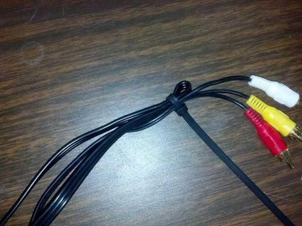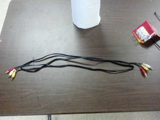 El cable encontré doblado muy bien tres veces dejando a cada extremo con los conectores de cables compuestos.  Fije una amarra cerca de cada extremo se reúnen los pliegues del cable y hacer un lazo muy pequeño al final.  Recorte el exceso amarra.