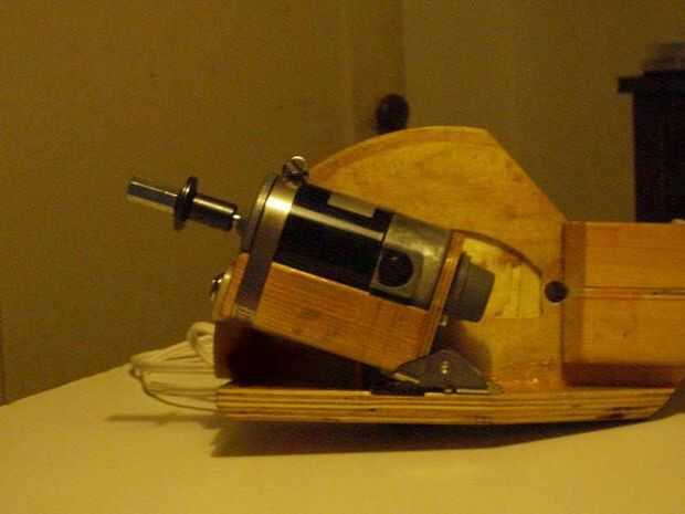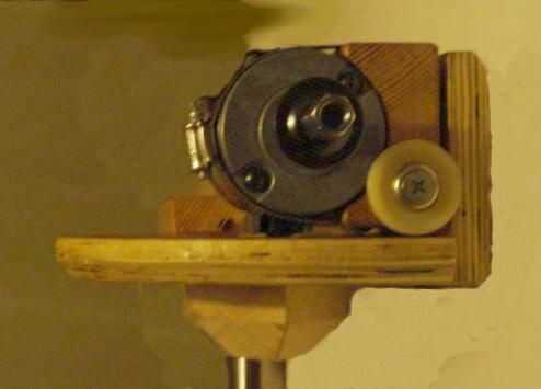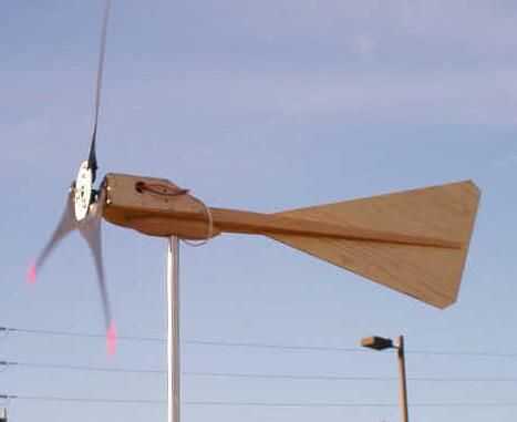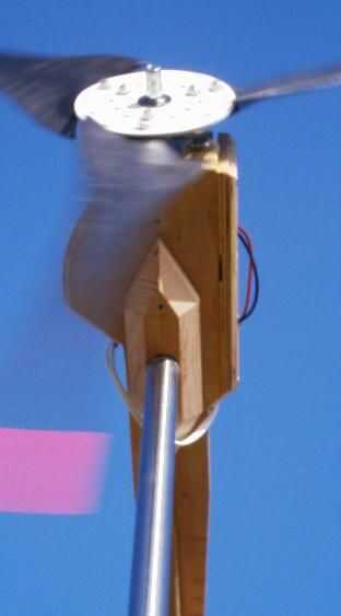 El generador fue montado en un bloque de madera barnizada, con el eje del generador en offset 1-5/8" desde el eje o punto de pivote de la bisagra. El desplazamiento de 1-5/8" proporciona el apalancamiento necesario para enrrollador para engranar correctamente cuando la velocidad del viento alcanza 9-10 km/h (= 4.0 - 4.5 m/s). Una velocidad del viento de 9-10 mph crea una presión de alrededor de 2 libras en las cuchillas de giro, iniciar el proceso de enrollar y manteniendo la salida de voltaje de C.C. del generador, en un nivel manejable.
