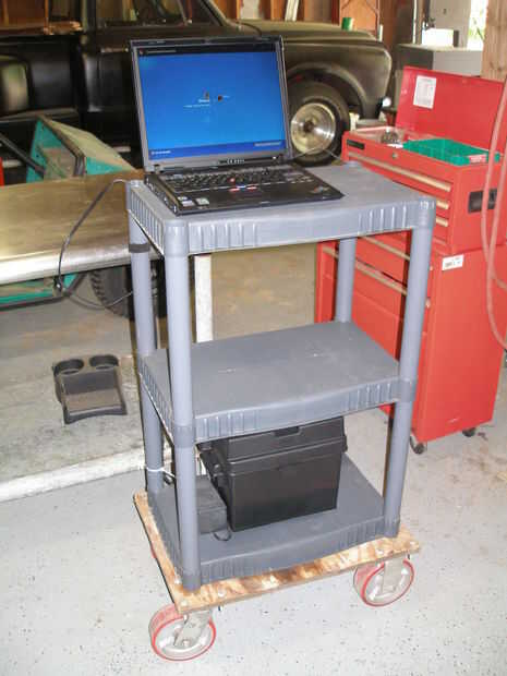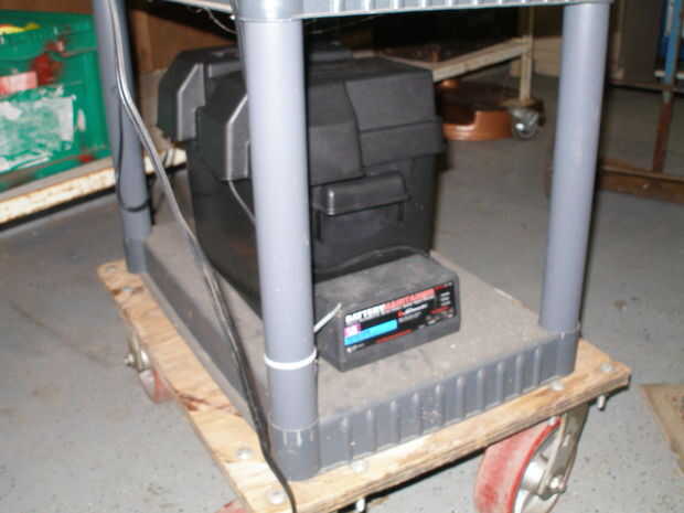 El carro de muebles bajo el soporte es temporal--finalmente a montar una base permanente y ruedas. Si usted planea hacer de este un carro con ruedas, uso ruedas o ruedas con un freno, o puede que encuentres persiguiendo a su equipo por el camino de entrada!