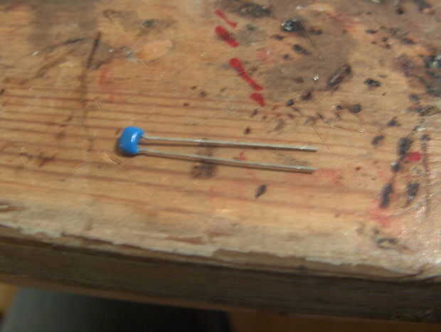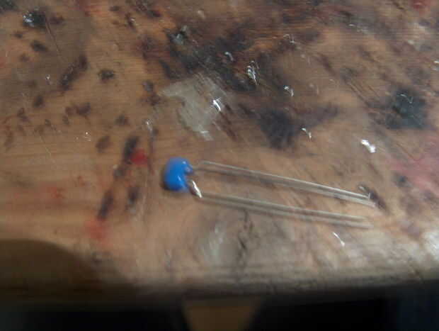 Luego, doble el pasador inferior del condensador a unos de otros y les de la soldadura. luego realizar un puente de soldadura en el medio perno del regulador.
