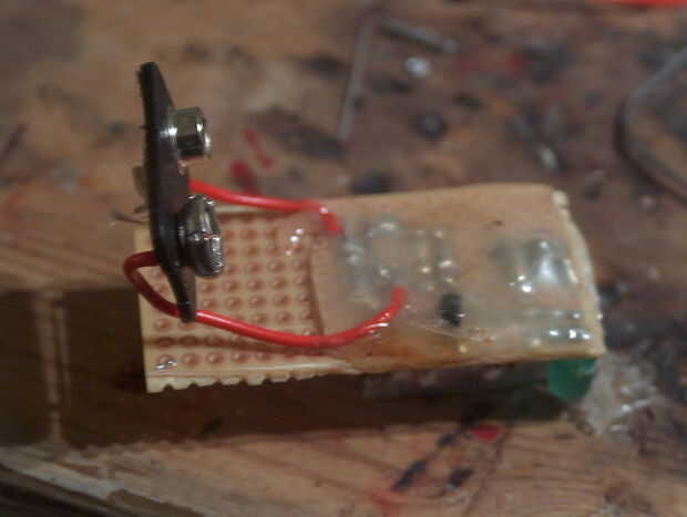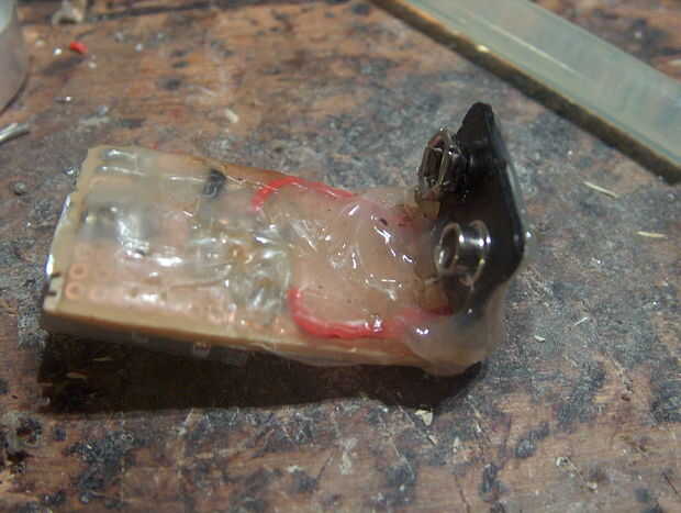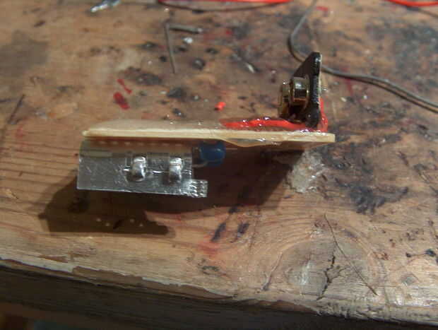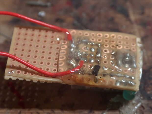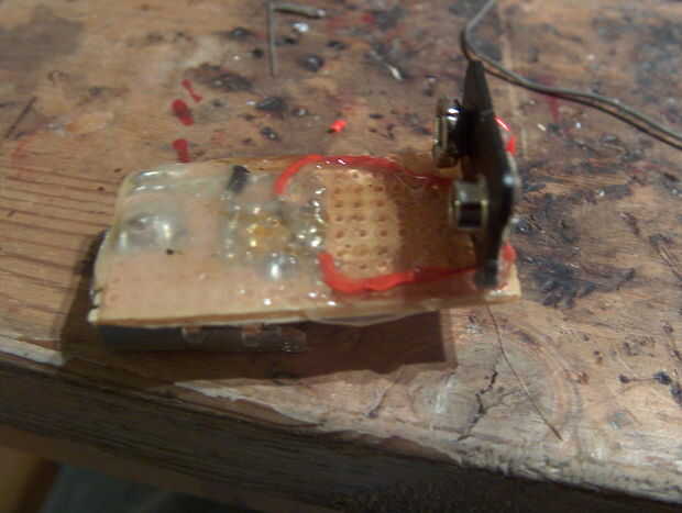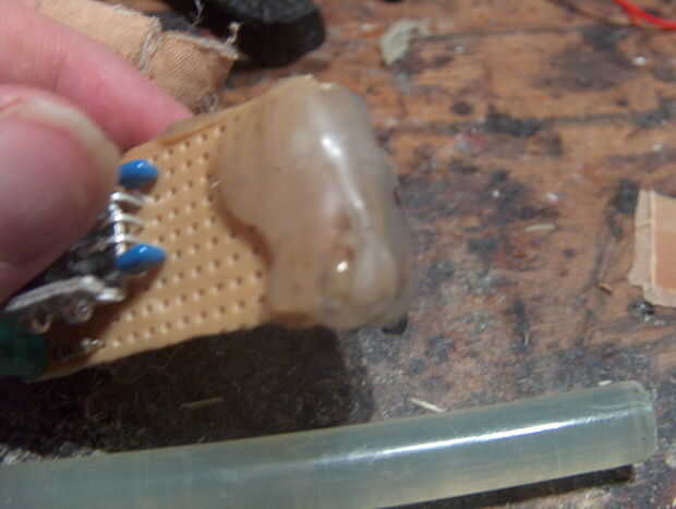 entonces, para proteger el circuito tanto como sea posible cubrí la parte inferior con pegamento caliente, solo una pequeña capa para cubrir todo.
