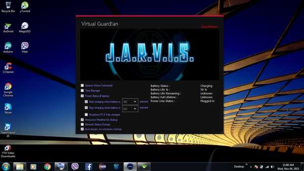Esto fue adoptado para mi software JARVIS en 2010 escribí un c# aplicaciones para ordenador que requiere reconocimiento de voz como en la película de IRON MAN, necesito JARVIS para comprobar y recordar sobre mi porcentaje de batería del ordenador portátil pero esa vez yo no he creado esta automatización para la carga.