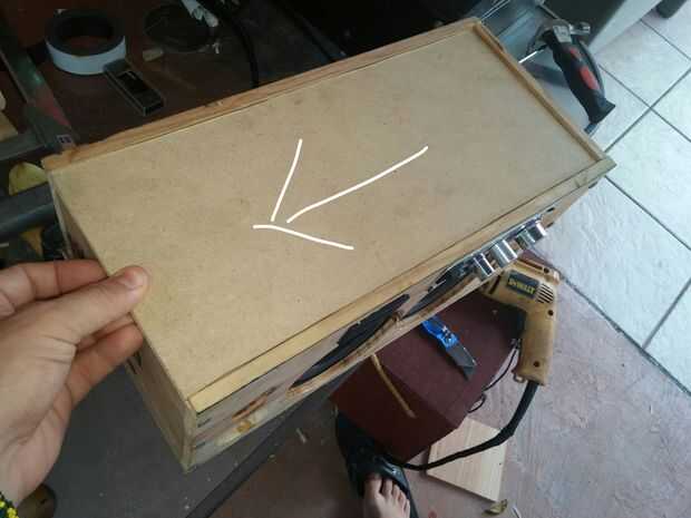 Originalmente el cuadro era dos veces tan grande, primero lo tomé todo aparte y luego medí la cantidad de espacio que necesitaba para los altavoces y la batería, luego corté todas las piezas y lo pones de nuevo juntos y hace desmontable el frente y la parte superior.
