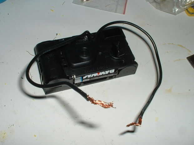 Tomar dos cinco pulgadas largos trozos de alambre y soldadura uno a cada uno de los cables del condensador.