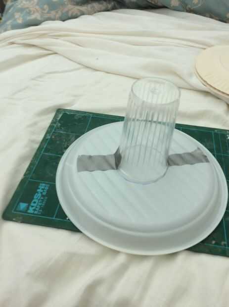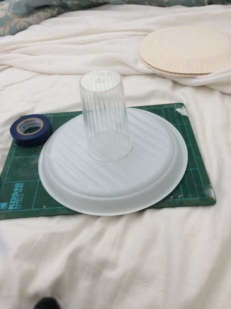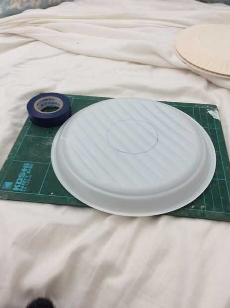 Encontrar el centro de su tazón de fuente o placa. No preocupación no tiene ser exacta! Trazar la poder o. La taza alrededor de la centre.grab alguna cinta aislante y cinta en!