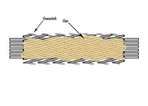 Poner la pila cosida de firmas en la/mordazas, con cerca de 1/2 pulgada que sobresalen. Unte pegamento (pva pegamento para madera o pegamento blanco, ambos funcionan bien) en las páginas, dejando algo de espacio en cada extremo para que el pegamento no se entre las páginas. Coloque un trozo de cañamazo sobre el pegamento y la extensión un poco más en la parte superior, para asegurar que está bien conectado. Deje secar durante unas horas.