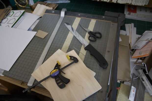 2 o más abrazaderas y pequeños (de 6 pulgadas por 8 pulgadas o thereabouts) de madera contrachapada