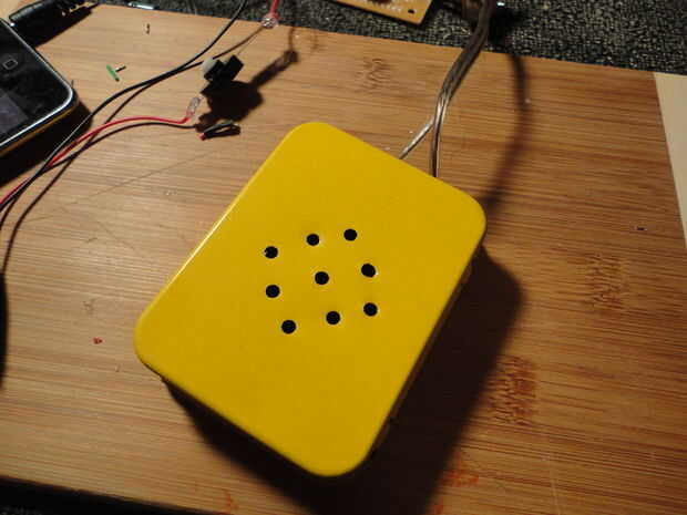 Perforar unos altavoces para sonar hacia fuera y pegar su altavoz en el recinto de la vivienda.