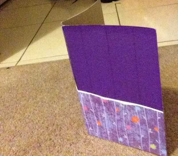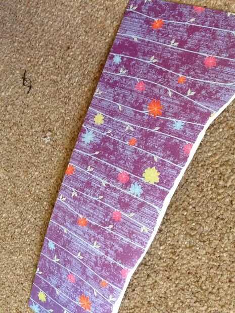 Rasgar un poco si bonito papel de scrapbooking y pegado en la parte inferior, si la concha de libro.