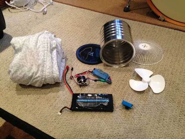 Nota: usando un motor de ventilador regulares y tal una aspa del ventilador pequeño se haga este trabajo. Usé un outrunner rc (que funciona en aproximadamente 12000 rpm) con el fin de lograr la cantidad de aire posible inflar la hoja.