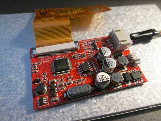 Dentro, encontrará la pantalla con un tablero unido a la pantalla LCD mediante un cable de cinta. 2 conectores se unen a la Junta; uno es el controlador (2 cables) el otro es la pantalla de entrada (4 hilos).