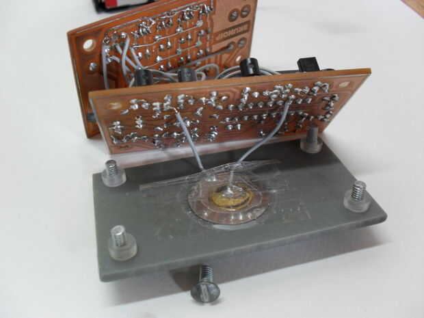 El altavoz se suelda directamente en el lado cobre de usar dos cables pequeños.
