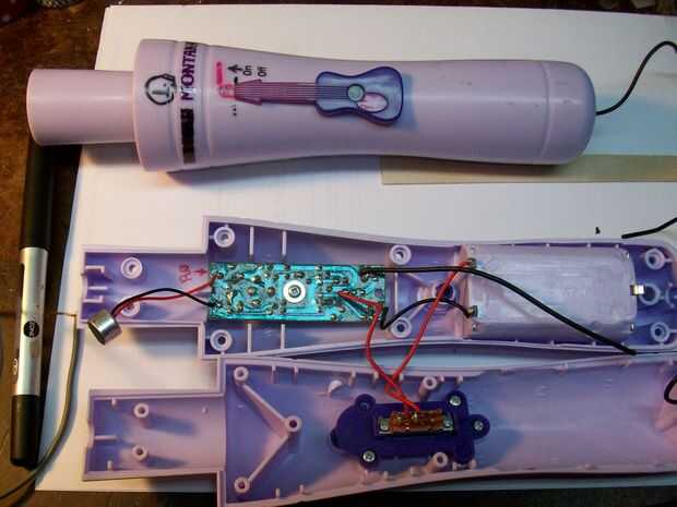 2 - mike wireless- aquí hemos utilizado un tipo de Hana Montana de bajo costo $6,00 de mike con mike parte quitada y attched a unos 3 pies de cable. El micrófono se coloca en el transportador. La señal inalámbrica es buena para 15 pies de distancia de su sistema estéreo de FM [set en 107Mc.]