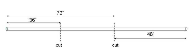 He medido y había marcado el tubo de PVC en 36" y 72". Asegura en un tornillo de banco y a través con un hack de sierra, aunque otro tipo de sierra, o un pipecutter de PVC si tiene uno. Si los extremos no son perfectamente cuadrados, un retoque rápido con la amoladora de banco se encargará de eso. También, presentar las fresas apagado (con una lima plana regular para el exterior, rat-tail para el interior) para que sea agradable, especialmente para la barra de salto. Los otros extremos se cubrirá y no importan tanto. Estos cortes deben producir dos longitudes de 36" para la regulación de altura postes y uno 48" pedazo de la barra transversal.