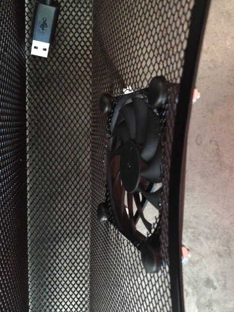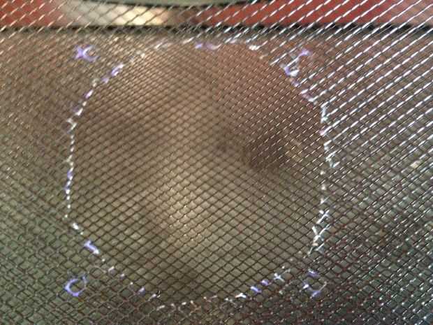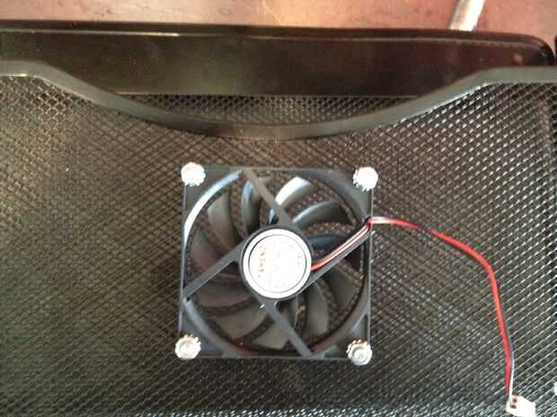 A continuación, puede utilizar los tornillos o tuercas del cojín de enfriamiento para fijar el ventilador a la parrilla. O, usted puede utilizar brocas más adecuadas, dependiendo de la preferencia. Es imperativo que las cabezas de los tornillos son hacia adentro, hacia el interior de la rejilla. También, asegúrese de que el cable del ventilador es hacia el orificio en el lado de la parrilla.