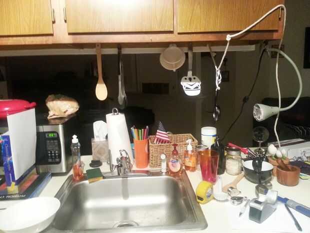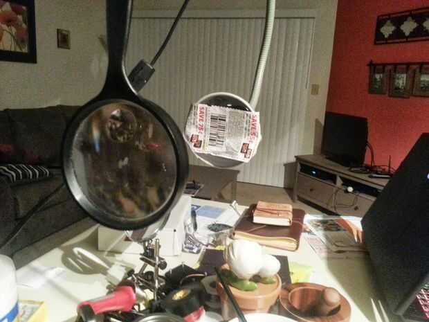 1. Coloque el objeto que se proyecta a la fuente de luz, tan plana como sea posible, pero deje suficiente espacio para el calor se escape, o tienes un fuego en sus manos (o en su mesa).