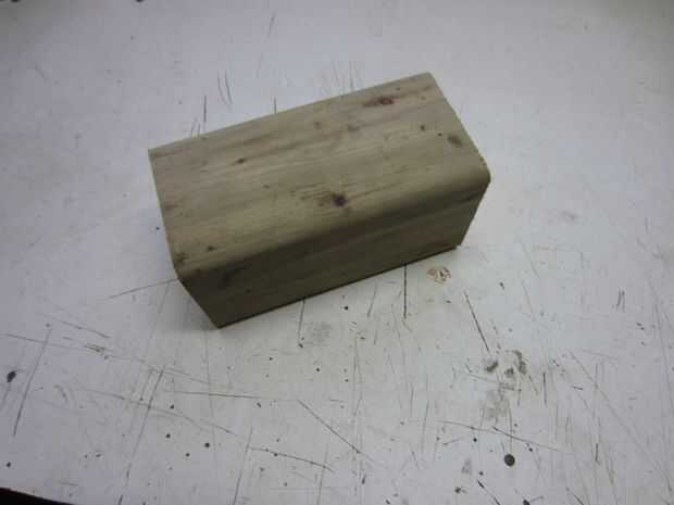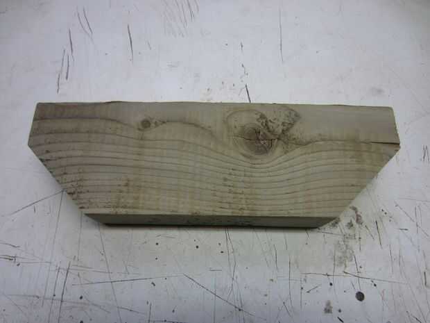 Así que lo primero que debemos hacer es cortar tu 4 x 4 hasta 7" de largo y su 2 x 4 aproximadamente 11" o casi el ancho de tu tabla de snowboard.  Ángulo de las esquinas inferiores del mi 2 x 4 para la estética.