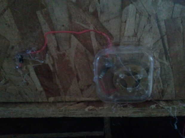 El panel superior tendrá una luz, para que pueda ver cuando si su oscuridad. En primer lugar, atornille las bisagras en el marco y el panel. A continuación lleve la batería y cinta adhesiva en el lado de la caja, entonces toma un pedazo largo de alambre, aproximadamente tan largo como la caja y los extremos de la tira. tomar un lado y enganchan en la batería y mantenga pulsado con alguna cinta.
