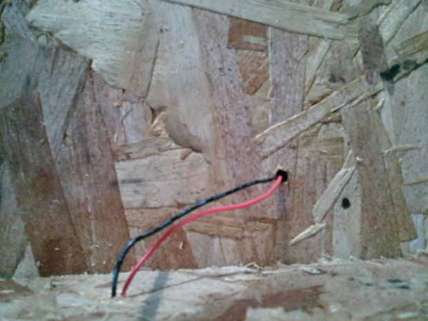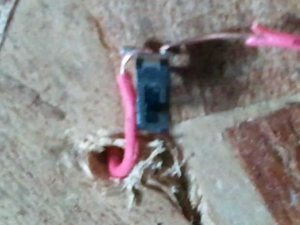 Luego perfore un agujero a través de la parte superior de la caja y el panel superior y llevar los cables a través. Luego tomar un alambre y conectar hasta el interruptor y el otro cable y conéctalo a la luz. Recuerde positivo con positivo y negativo a negativo. Cortar un pequeño trozo de alambre y conectar a la luz y el interruptor y lo que tiene que soldar la soldadura.