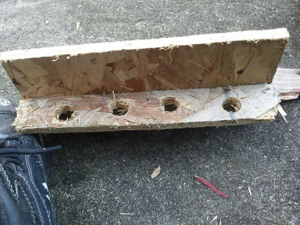 Luego cortar un trozo de madera para utilizar como soporte para sus herramientas (arma que soldaba, el arma De-soldering, Ect.) Perfore los agujeros lo suficientemente grande como para sus herramientas caber en pero pequeñas suficiente para evitar pasar por unos orificios pueden ser más grandes que los otros.