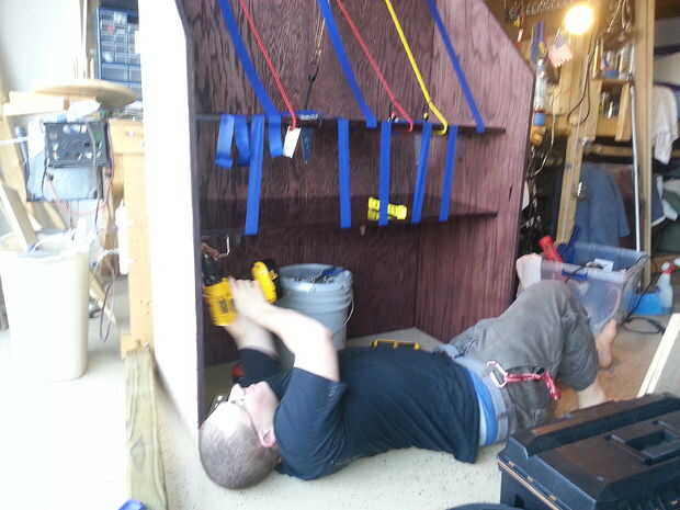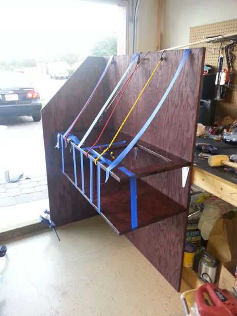 Si no tienes a nadie para sostener cosas para arriba para usted, no tengas miedo! Cinta de pintor y cuerdas del amortiguador auxiliar están en el camino!