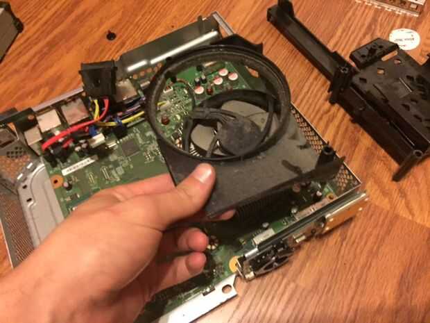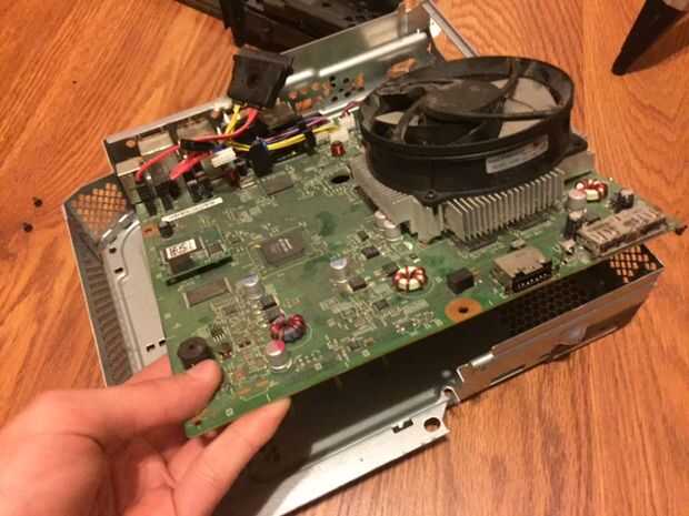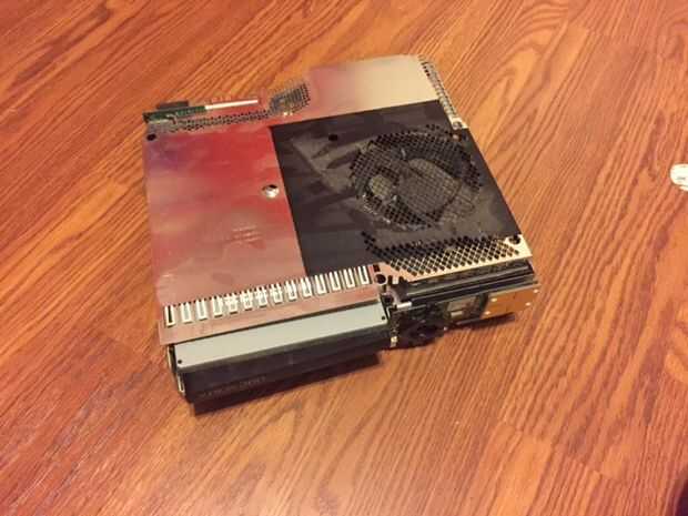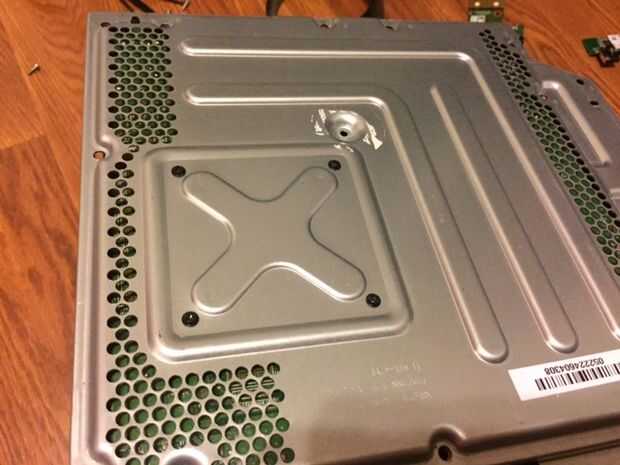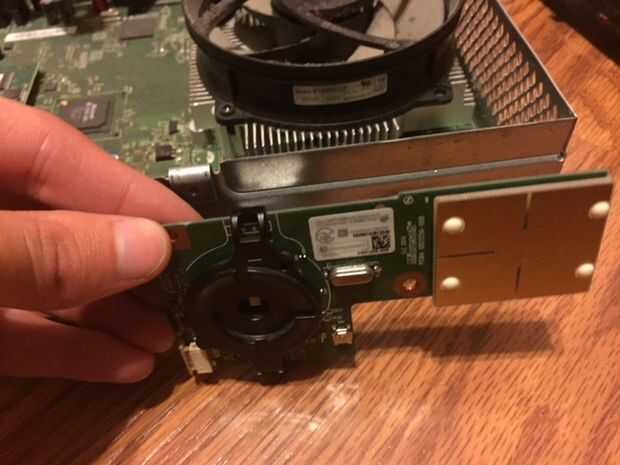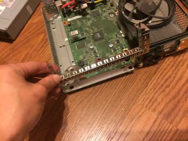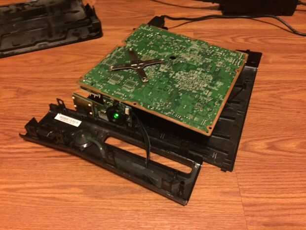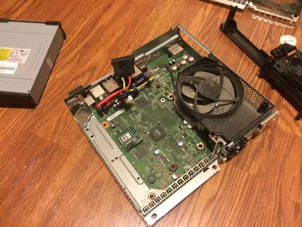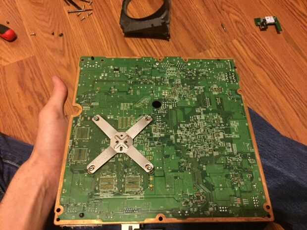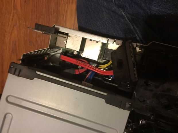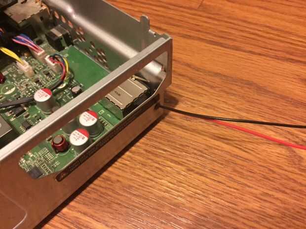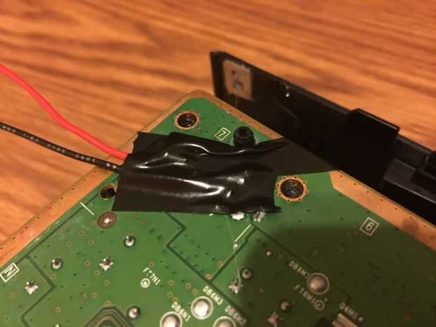 En este paso, debemos soldar los cables de alimentación a la tarjeta real. Primero tenemos que quitar el intento para el disco duro externo, hacerlo quitando el cable con el tornillo y tirar la trey hacia fuera, luego necesitas quitar la inmersión óptica, desconecte los cables y retire la unidad. Luego, tienes que quitar el ventilador. Mira en la parte posterior de la caja y quitar los tornillos que sujetan el ventilador hacia abajo y deben salir solo. A continuación tienes que eliminar todas las piezas exteriores como la tarjeta inalámbrica y el frente pcb. Ahora usted debería ser capaz de eliminar la actual Junta, así que hacer eso y dale la vuelta. En el otro lado de la conexión de alimentación debería ver las lengüetas de la soldadura. Necesita conectar dos cables a los 12v y tierra se pondrá hacia fuera conductor del lcd. En la foto de arriba, las lengüetas amarillas son los conectores de 12v y el negro son los conectores de tierra. Una vez que se conectan los cables, colocar cinta aislante debajo de la soldadura para proteger de un cortocircuito. Finalmente, vuelva a colocar la Junta y todos sus componentes en su carcasa de metal y pase los cables a través de un agujero en el lado de la carcasa.