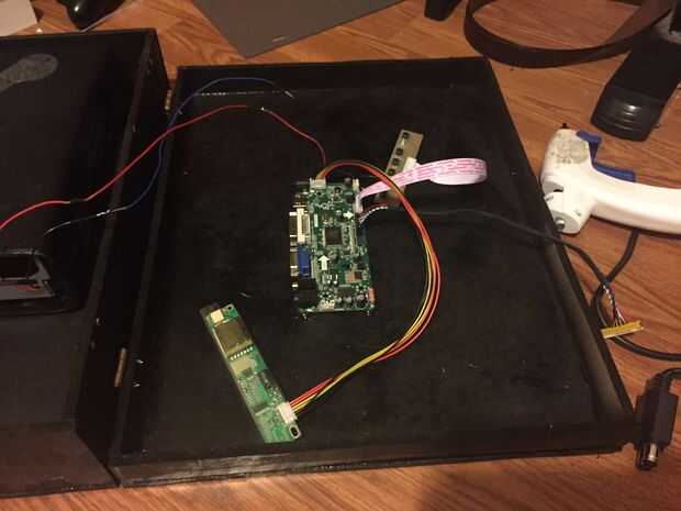 En primer lugar, la soldadura de los cables de la xbox en el controlador del lcd y pegar el conductor y el lcd en el caso. Ejecutar todos los cables hasta la parte inferior la mitad de la caja y fije el panel delantero con los tornillos. Una vez tienes todo en la caja, encender la xbox y probarlo.