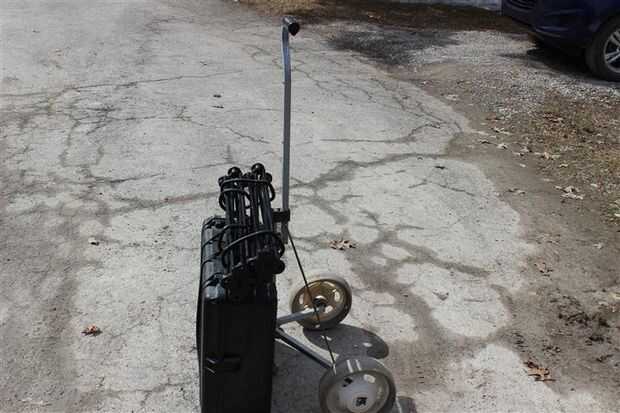 · En primer lugar cortando una sección de la parte inferior del tubo hacia abajo. Este corte quitado el portabolsas de bolsa de golf club de fondo y parte inferior soporte base – junto con el acortamiento del tubo plegable