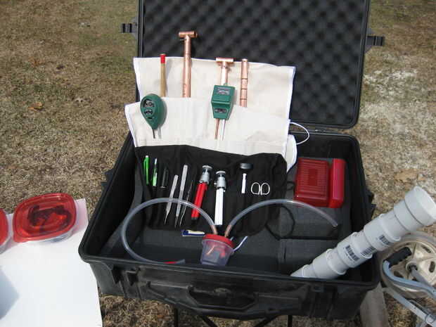 por años he estado llevando alrededor de los tubos de bolas de tenis hacinados con todo el kit necesario para probar el pH del suelo, queda solo suficiente habitación para un par de tubos de ensayo. Cuando en el sitio sólo obtiene con punta hacia fue