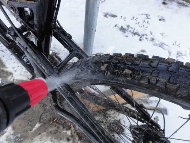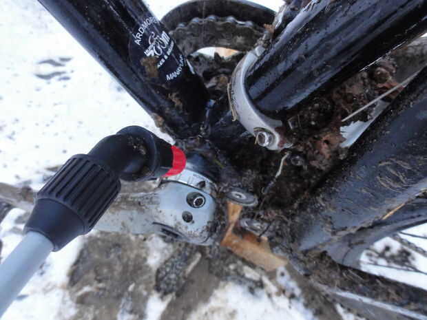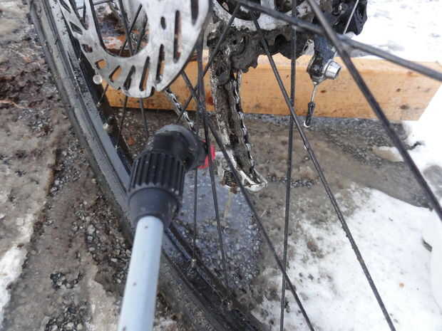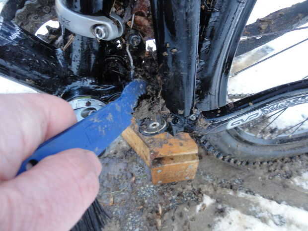 Cuando hace frío más o menos puede utilizar el pulverizador y algunas herramientas para limpiar la mayor parte de la bici sin las manos húmedas.