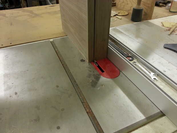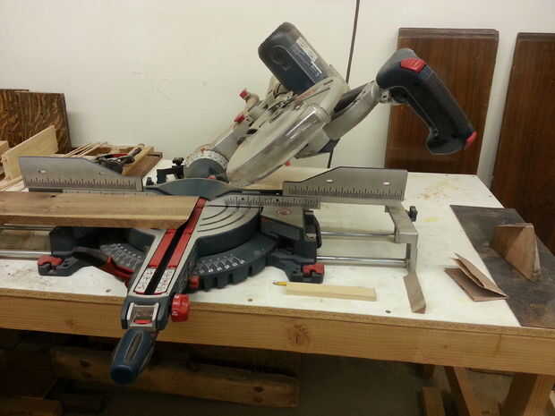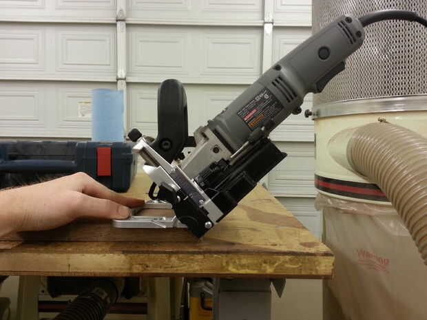 Una vez que ambos lados de la Junta han sido dadoed para recibir el panel, corte las piezas a la longitud en un ángulo de 45 grados utilizando la sierra para cortar ingletes. Medida y ajuste seco 45 grados corta en una pieza de práctica antes de cortar la nuez para asegurar una buena Plaza de la casilla final. Cortar los cuatro lados de la caja y prestar atención a mantener el flujo de grano continuamente envoltura alrededor de la caja. Luego usé un unidor de galletas para crear ranuras para las galletas que proporcionan estabilidad extra conjunto en las esquinas. Como siempre, hacer una prueba de corte con el unidor de galletas antes de cortar las piezas de la real. Ponga las galletas en un área que no sido visible al cortar abierto el cuadro de más adelante. En este punto es una buena idea para marcar la parte superior de las piezas para que sepa dónde colocar galletas y qué lado corte después de que se pega totalmente para arriba.