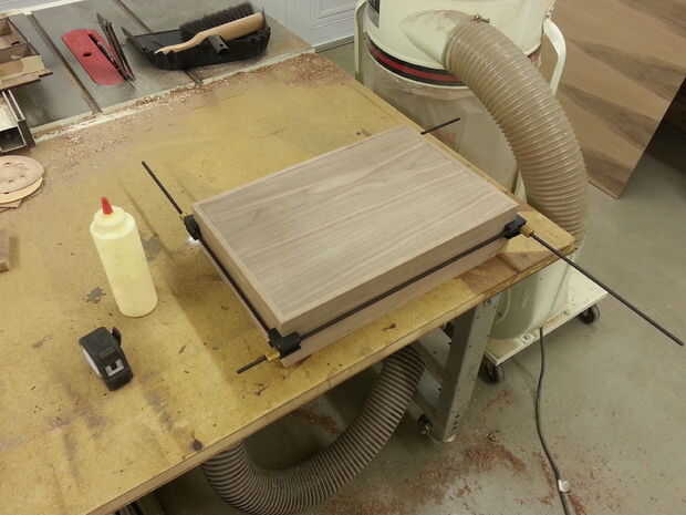 Pegamento para arriba y sujetar los cuatro lados de la caja. Entonces pueden tomar las medidas exactas de los bajorrelieves de panel para determinar los tamaños de panel. Cortar la madera contrachapada, paneles de tamaño en la tabla VI y pegamento en las ranuras a cada lado del marco. Aplique tantas pinzas como sea necesario para verificar que los paneles son completamente inserción en el caso. Una vez que el pegamento ha fijado, la caja de corte abierto con Sierra de mesa. Prestar atención a las marcas aplicado anteriormente para garantizar el corte se está realizando en el lado correcto de la caja. Usé una dimensión de 3" en la parte inferior de mi diseño.