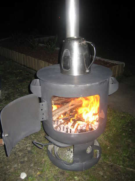 Para ser utilizado como un calentador brasero o patio, puede ser levantada la cámara superior y el tubo de la estufa se ajusta directamente a la olla del fuego. El hervidor de agua hierve muy bien en la cocina, o incluso una sartén wee funciona bien.