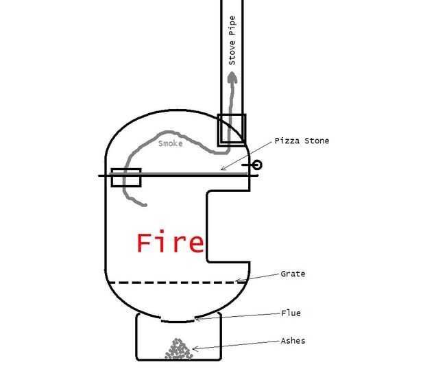 Un incendio se construye en el pote del fuego principal, y el aire se elabora a través de un tubo ajustable en la parte inferior que sirve también como punto de salida de la ceniza. Hay una cámara superior para cocinar que el humo caliente pasa a través de antes de salir hacia fuera del tubo de la estufa. La temperatura puede ser regulada controlando el aire a través de la chimenea tanto también girando la cámara superior para que el humo caliente tiene menos distancia para viajar del brasero a la pipa de la estufa.