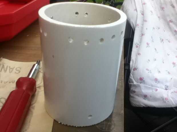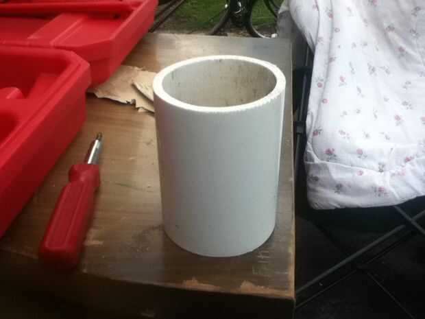 Primero corte el tubo de PVC a la longitud, medido a la altura de una lata.