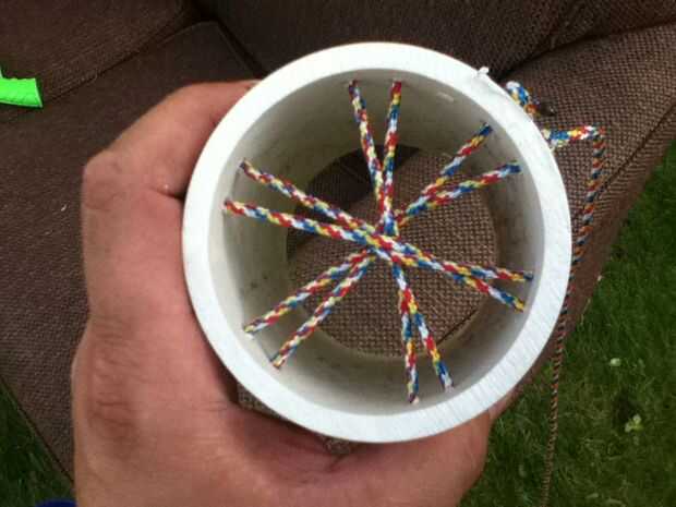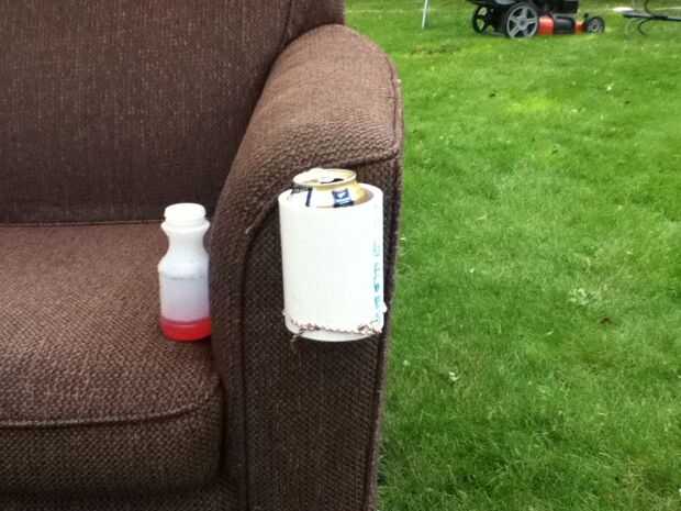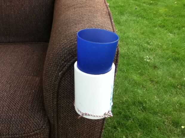 Tengo mi sofá desfile/hoguera (sofá en las ruedas) pero no los sostenedores de taza en él, probado los de la tienda, pero rompieron la primera noche en la hoguera, por lo que estaba buscando alrededor de alguna cosa para utilizar como un sostenedor de taza y esto es lo que se me ocurrió.
