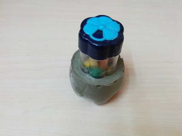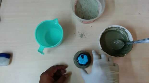 No llenar completamente el molde, dejar al menos 1 cm desde la parte superior si no que la mezcla de cemento se desbordará cuando se coloca el envase interno.